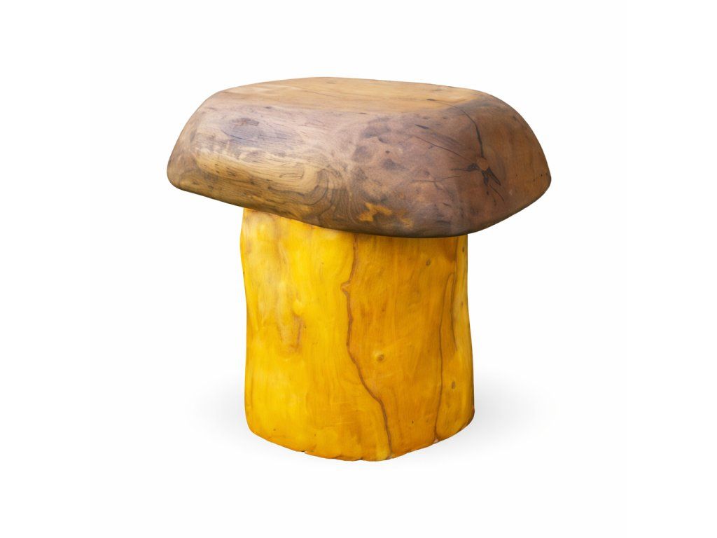 Tento akátový špalek ve tvaru hřibu funguje jako posezení, odkládací stolek i výrazný prvek, který na zahradě hned zaujme. Není to jen kus dřeva, ale věc, která prostoru dodá trochu hravosti.